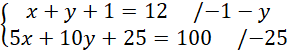 Ustal, ile było monet 5-, a ile 10-centowych, jeśli jednego dolara zmieniono na monety 5-, 10- i 25-centowe, a po rozmienieniu było łącznie 12 monet, w tym jedna moneta 25-centowa.