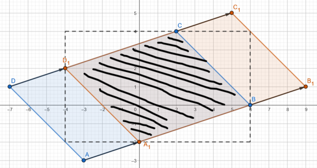 Wyznacz pole części wspólnej równoległoboku ABCD i jego obrazu w przesunięciu o wektor