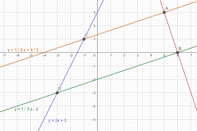 Zauważ, że punkt A jest miejscem przecięcia prostych