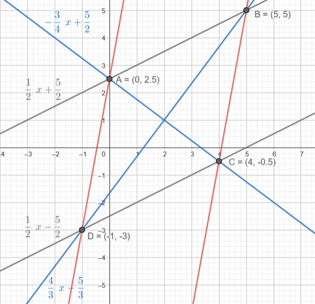 Naszkicuj wykresy wszystkich wyznaczonych funkcji i zaznacz brakujące boki powstałego rombu.