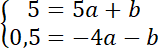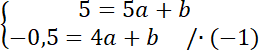 . Zauważ, że powstanie układ dwóch równań z dwoma niewiadomymi. Wyznacz wartość współczynników a i b.