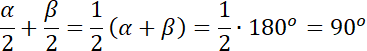 Więc miara kąta pomiędzy dwusiecznymi wyniesie: