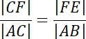 Trójkąty CEF i ABC są podobne z cechy KKK – odpowiadające sobie kąty mają równe miary.