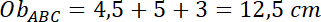 Następnie oblicz obwód trójkąta ABC i wyznacz skalę podobieństwa trójkątów podobnych. Zauważ, że jest ona stosunkiem długości odpowiadających sobie boków w obu figurach.