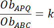 Oznacza to, że trójkąty ABC i APQ są podobne z cechy KKK – odpowiadające sobie kąty mają równe miary.