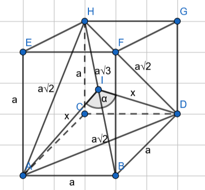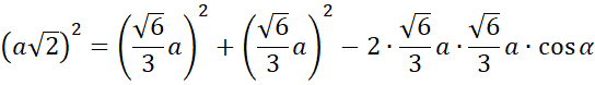 Wyznacz cosinus kąta zawartego między ścianami bocznymi tego ostrosłupa, których wspólną krawędzią jest przekątna sześcianu, jeśli w sześcianie połączono wierzchołki dolnej podstawy z jednym z wierzchołków górnej podstawy i otrzymano ostrosłup.