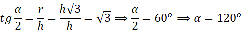 Wyznacz miarę kąta rozwarcia stożka, jeśli w walec wpisano stożek, a pola powierzchni bocznych obu brył są równe.
