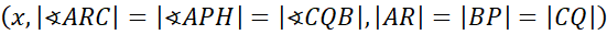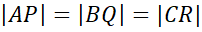 Trójkąty APB, BCQ i ACR są przystające z cechy BKB , więc .