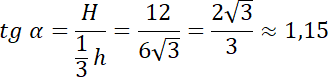 Wyznacz miarę kąta nachylenia ściany bocznej tego ostrosłupa do jego podstawy, jeśli krawędź boczna ostrosłupa prawidłowego trójkątnego ma długość 24 cm, a jego wysokość jest równa 12 cm.