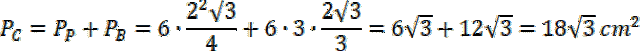 Następnie zauważ, że pole trójkąta równobocznego o boku