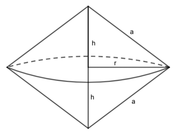 Na koniec oblicz objętość powstałej bryły, czyli dwóch stożków, gdy objętość każdego z nich można obliczyć ze wzoru .