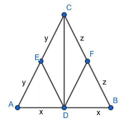 Udowodnij, że jeśli , to trójkąta ABC jest równoramienny, jeśli w trójkącie ABC poprowadzono środkową CD, a z punktu D poprowadzono środkowe trójkątów ADC i CDB: odpowiednio DE i DF.