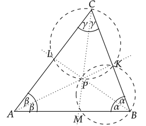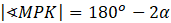 Zauważ, że kąty MPK i APC są kątami wierzchołkowymi, więc miary ich kątów są równe.