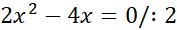 W tym zadaniu narysuj wykres funkcji f(x) = 2x2 – 4x i opisz jej cechy, takie jak: dziedzina, zbiór wartości, miejsca zerowe, przedziały, w których funkcja ma stały znak, przedziały monotoniczności, wartości największe, najmniejsze funkcji i argumenty, dla których funkcja je przyjmuje, oraz liczbę rozwiązań równania f(x) = m w zależności od wartości m.