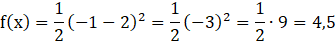 F(x) | 4,5 | 2 | 0,5 | 0 | 0,5 | 2 | 4,5 |
