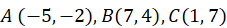 W trójkącie ABC dane są wierzchołki: