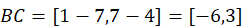 Oblicz wektory AB, BC i CA, a następnie znajdź punkt znajdujący się w