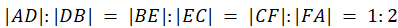 AB, BC i AC tego trójkąta zaznaczono odpowiednio punkty D, E, F w taki sposób,
