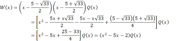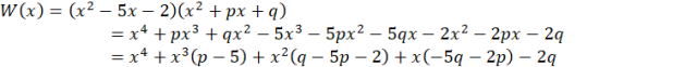 Zauważ, że skoro wielomian W jest stopnia 4, to wielomian Q musi być wielomianem stopnia 2, a jeżeli współczynnik przy najwyższej potędze tego wielomianu jest równy 1, to taki sam będzie w przypadku wielomianu Q.