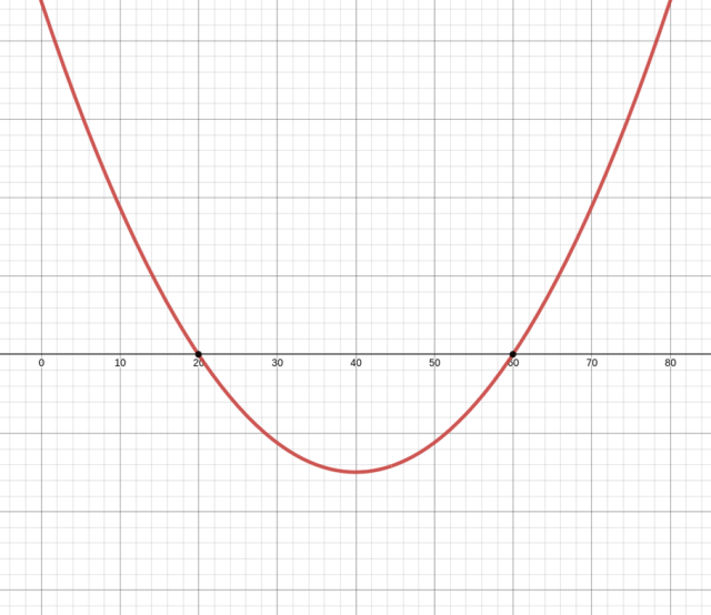 Obie długości muszą być dodatnie, ponieważ opisują odcinki, zatem przedział wartości zmiennej jest równy: