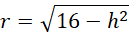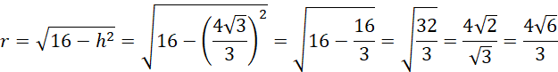 Opisz długość promienia podstawy jako 𝑟. Wyznacz jego długość względem wysokości: