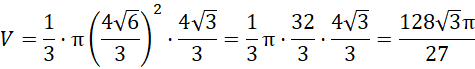 Odp. Wysokość, promień podstawy oraz objętość stożka o maksymalnej objętości to odpowiednio: