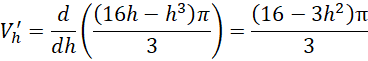 Oznacz wysokość stożka oraz promień jako zmienną. Oblicz długość promienia podstawy względem wysokości bryły i wyznacz przedział wartości. Podstaw otrzymane długości do wzoru na objętość stożka. Miejsca zerowe pochodnej wyznaczonej funkcji wskazują na prawdopodobne ekstrema lokalne. Sprawdź, czy pochodna zmienia znak dla wyznaczonej wartości – masz wtedy do czynienia z ekstremum lokalnym. Oblicz promień podstawy oraz objętość stożka dla otrzymanych wartości, korzystając z odpowiednich wzorów.