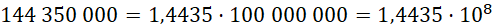 Przedstaw 144 350 000 w postaci wykładniczej.