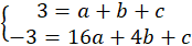 Zacznij od wyznaczenia równania prostej przechodzącej przez punkty (1, 3) i (4, -3). Kolejno ustal wybraną wartość a. Stwórz układ równań, aby wyznaczyć wartości b i c. Przedstaw ostateczną formę układu równań.