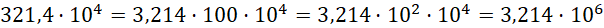 gdzie liczba a jest większa od 1 i mniejsza od 10 (lub większa od -10 i mniejsza od -1 dla a ujemnego), a liczba n jest liczbą całkowitą. Przedstaw podaną liczbę w postaci wykładniczej.