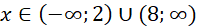 Rozwiązaniem tej nierówności są liczby oddalone od punktu 5 o więcej niż 3 jednostki na osi liczbowej, a więc: