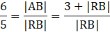 Z treści zadania wiemy, że |RB|:|AB| = 5 : 6, więc można zapisać, że |RB| = 5x, |AB| = 6x.