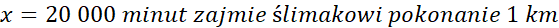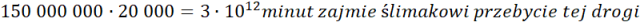 Oblicz, ile czasu zajmie ślimakowi pokonanie 1 km. Następnie na tej podstawie oblicz czas potrzebny mu do pokonania całej odległości od Ziemi do Słońca. Przelicz minuty na lata. Wyniki podawaj w formie notacji wykładniczej.