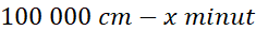 Za pomocą dwóch proporcji wyliczono czas, jaki potrzebuje ślimak, żeby przebyć 1 km. Następnie przemnożono ten czas przez całą odległość. Za pomocą drugiej proporcji przeliczono minuty na lata i zapisano wynik w postaci notacji wykładniczej, czyli w postaci