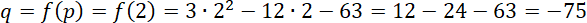 Współrzędną q wierzchołka paraboli opisanej wzorem