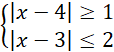 Pierwszą nierówność spełniają liczby oddalone na osi liczbowej na więcej lub dokładnie 1 jednostkę od punktu 4.