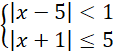 Drugą nierówność spełniają liczby oddalone na osi liczbowej na mniej lub dokładnie 5 jednostek od punktu -1.