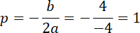 Współrzędną p wierzchołka paraboli opisanej wzorem