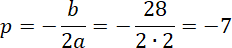 Współrzędną p wierzchołka paraboli opisanej wzorem