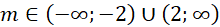 Dla wartości m większych od -2 i mniejszych od 2 mamy trzy przecięcia, więc w takim przedziale mamy 3 rozwiązania.