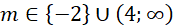 Dla wartości m większych od -2 i mniejszych lub równych 4 mamy dwa przecięcia, więc w takim przedziale mamy 2 rozwiązania.