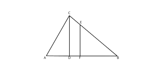 Dany jest trójkąt ABC, w którym wysokość CD pada na bok AB i dzieli ten bok na dwie części. Na jakie części podzieli bok BC symetralna jego boku?