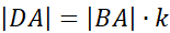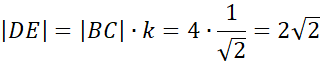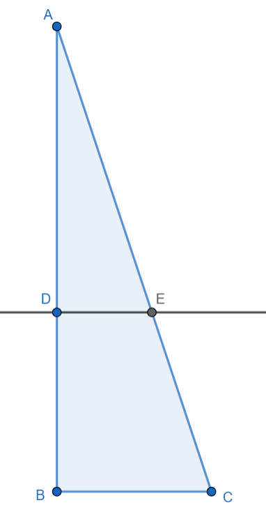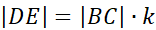 Trójkąt ADE jest podobny do trójkąta ABC z cechy kąt – kąt – kąt w skali opisanej zmienną k: