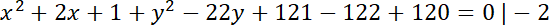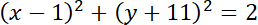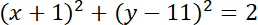 Zauważ, że okrąg przekształcony przez symetrię względem początku układu współrzędnych będzie miał taki sam promień, a jego środek będzie po przekształceniu miał zmienione znaki na obu współrzędnych, zatem: