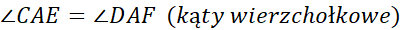 Tak więc trójkąty ACE i AFD są podobne do siebie z cechy kąt – kąt – kąt, więc można zapisać, że: