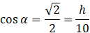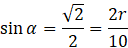 W podpunkcie tym masz podane, że kąt α wynosi 45º. Wysokość walca wyznaczysz wykorzystując funkcję cosinus, natomiast podwójną długość promienia wyznaczysz z funkcji sinus.