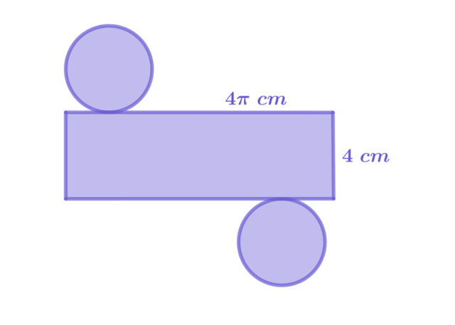 Dany jest walec, którego przekrojem osiowym jest kwadrat o boku 4 cm. Naszkicuj jego siatkę w rzeczywistych rozmiarach.