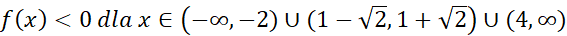 6) Funkcja nie przyjmuje wartości najmniejszej i przyjmuje wartość największą 2 dla