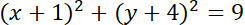 Zauważ, że symetria środkowa względem początku układu współrzędnych zachowuje promień okręgu i zmienia jego środek na symetryczny tj. ze zmienionymi znakami na obu współrzędnych.