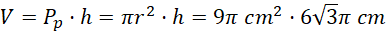 Dany jest walec, którego koło w podstawie ma obwód 6π cm. Wyznacz jego objętość oraz pole całkowitej powierzchni wiedząc, że jeśli rozwinąć jego powierzchnię boczną, to kąt pomiędzy przekątną otrzymanego prostokąta, a bokiem równym wysokości walca ma miarę 30°.